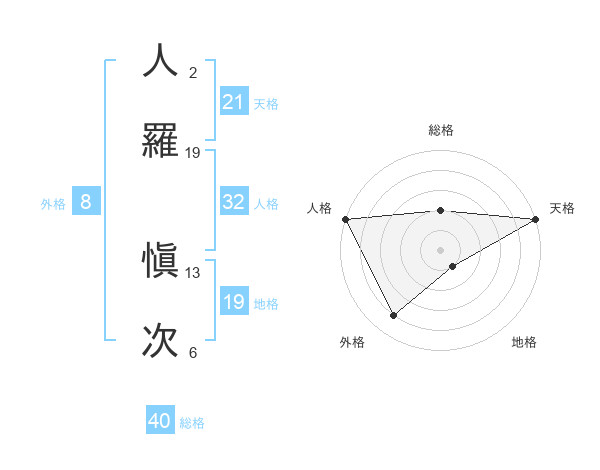 人羅 愼次さんの天格は21画の5点!