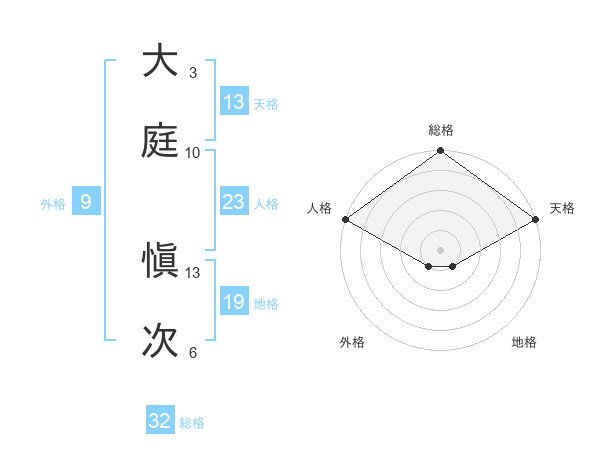 大庭 愼次さんを姓名の画数から五運を鑑定