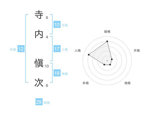 寺内 愼次さんを姓名の画数から五運を鑑定