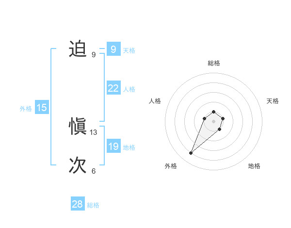 迫 愼次さんを姓名の画数から五運を鑑定