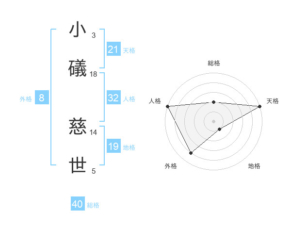 小礒 慈世さんを姓名の画数から五運を鑑定
