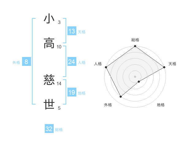小高 慈世さんの総格は32画の5点!