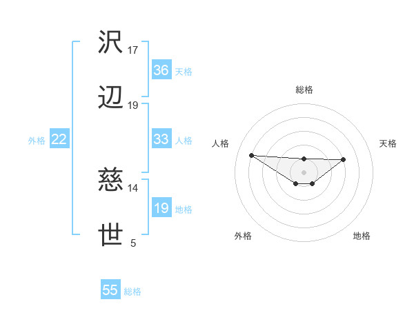 沢辺 慈世さんを姓名の画数から五運を鑑定