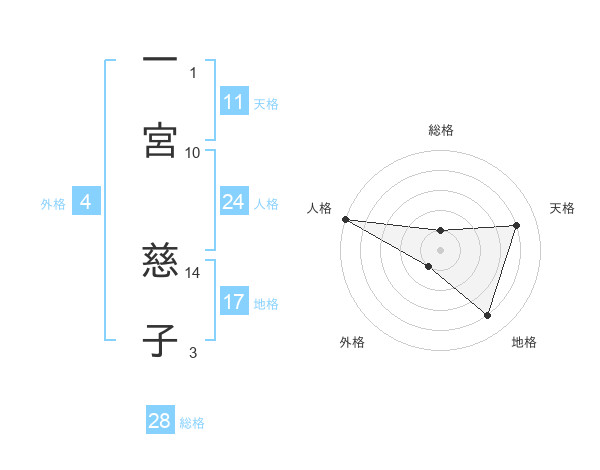 一宮 慈子さんを姓名の画数から五運を鑑定