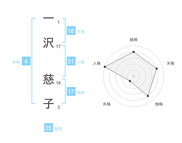 一沢 慈子さんを姓名の画数から五運を鑑定