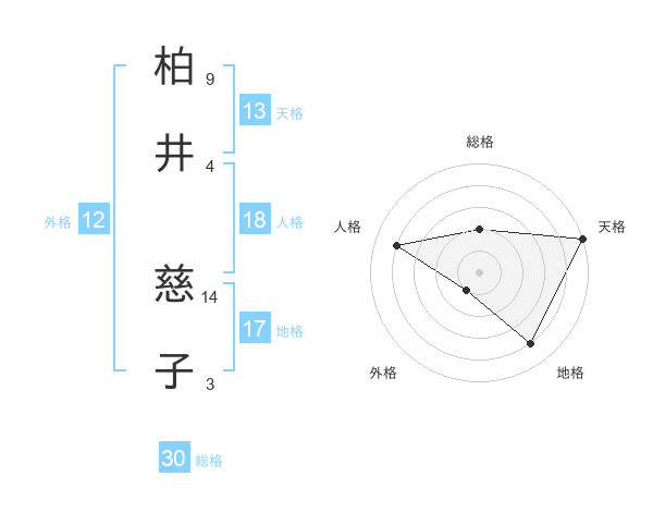 柏井 慈子さんの天格は13画の5点!