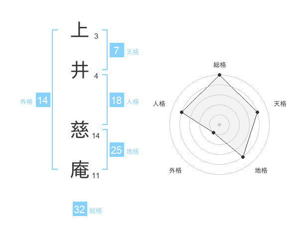 上井 慈庵さんを姓名の画数から五運を鑑定