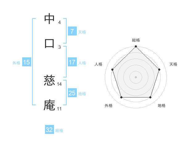 中口 慈庵さんの総格は32画の5点!