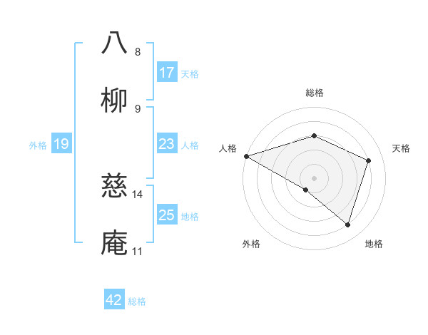 八柳 慈庵さんを姓名の画数から五運を鑑定