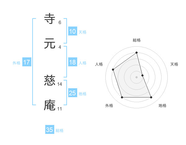 寺元 慈庵さんを姓名の画数から五運を鑑定