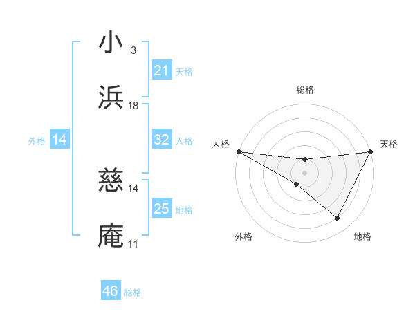 小浜 慈庵さんの天格は21画の5点!