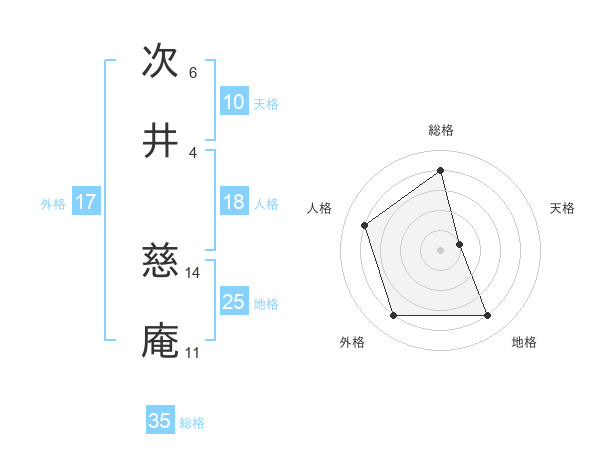 次井 慈庵さんの総格は35画の4点!
