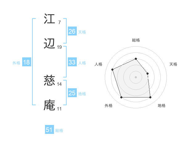江辺 慈庵さんの総格は51画の3点!