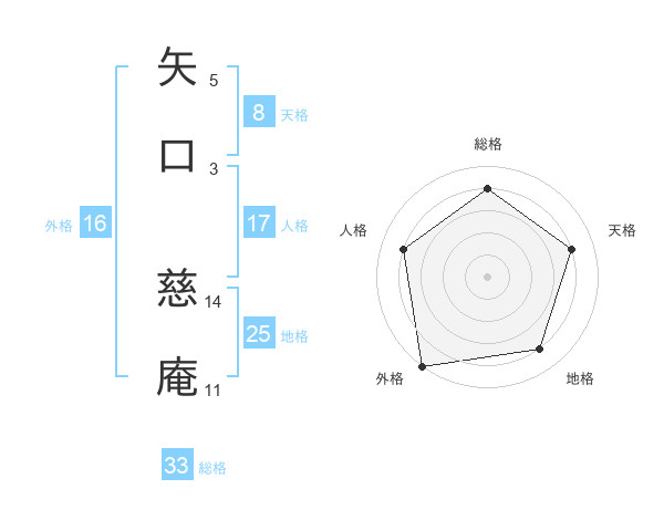 矢口 慈庵さんの総格は33画の4点!