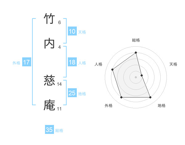竹内 慈庵さんを姓名の画数から五運を鑑定