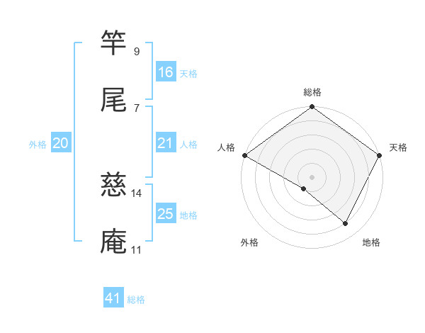 竿尾 慈庵さんの総格は41画の5点!