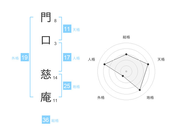 門口 慈庵さんの総格は36画の3点!
