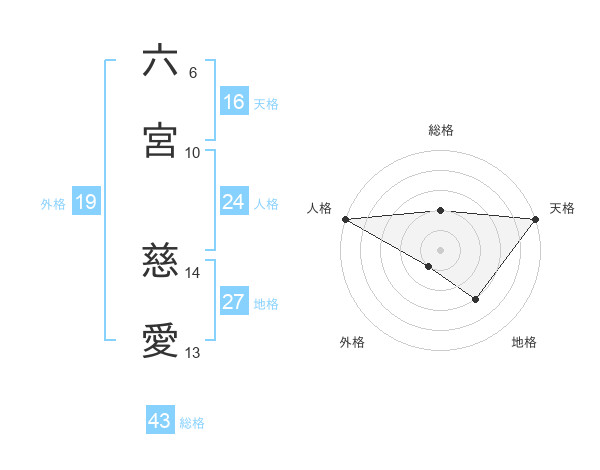 六宮 慈愛さんを姓名の画数から五運を鑑定