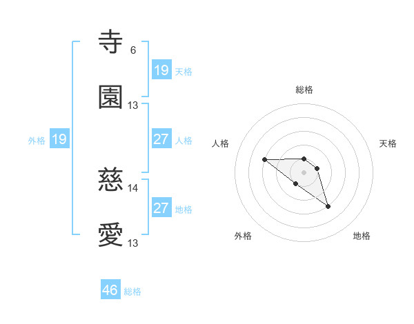 寺園 慈愛さんの総格は46画の1点!