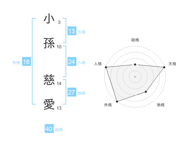 小孫 慈愛さんを姓名の画数から五運を鑑定