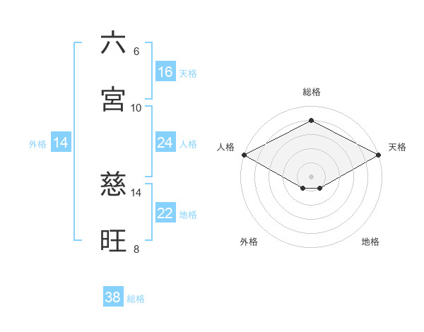 六宮 慈旺さんを姓名の画数から五運を鑑定