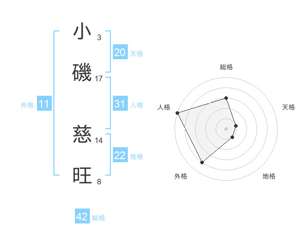 小磯 慈旺さんの天格は20画の1点!