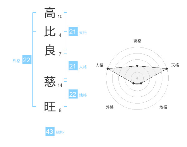 高比良 慈旺さんの天格は21画の5点!