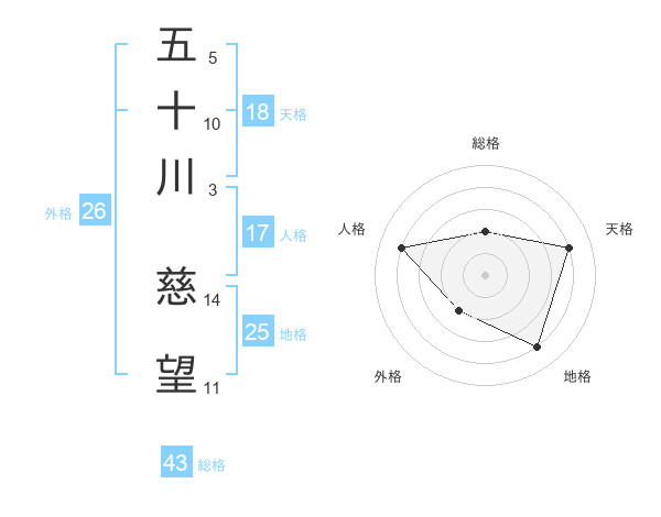 五十川 慈望さんを姓名の画数から五運を鑑定