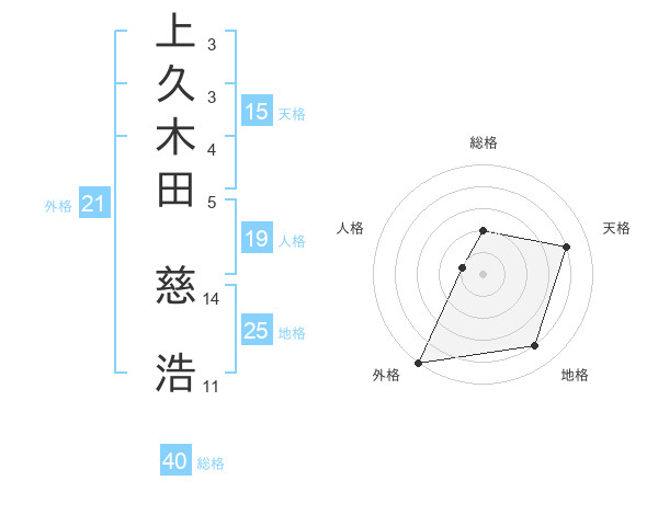 上久木田 慈浩さんを姓名の画数から五運を鑑定