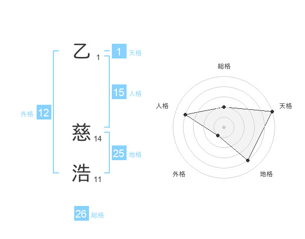 乙 慈浩さんを姓名の画数から五運を鑑定