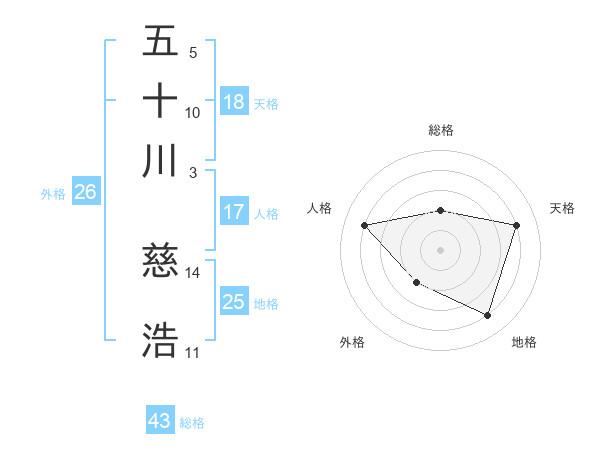 五十川 慈浩さんを姓名の画数から五運を鑑定