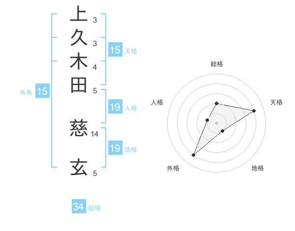 上久木田 慈玄さんを姓名の画数から五運を鑑定