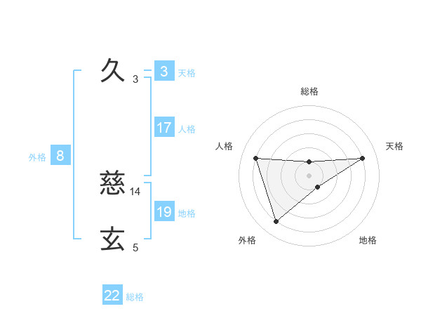 久 慈玄さんの総格は22画の1点!