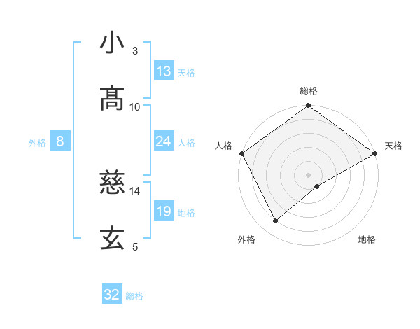 小髙 慈玄さんを姓名の画数から五運を鑑定