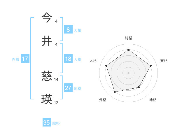 今井 慈瑛さんを姓名の画数から五運を鑑定