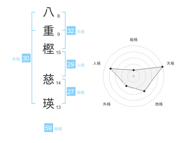 八重樫 慈瑛さんの総格は59画の1点!