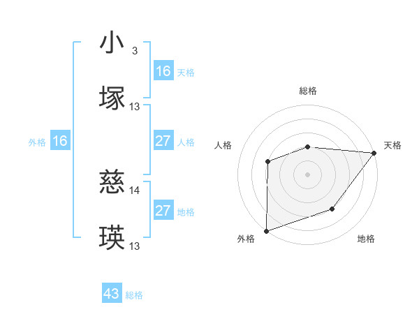 小塚 慈瑛さんの総格は43画の2点!