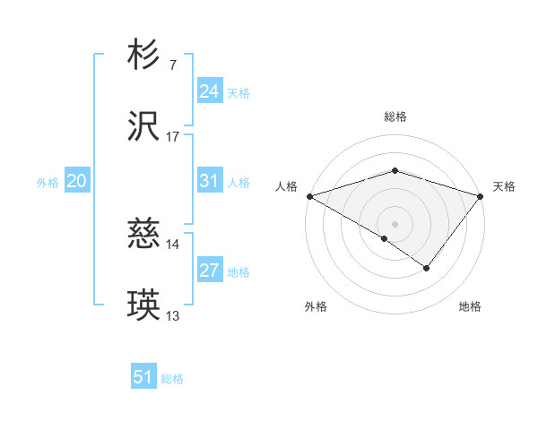 杉沢 慈瑛さんを姓名の画数から五運を鑑定