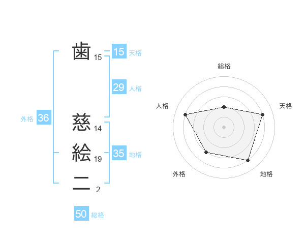 歯 慈絵二さんの総格は50画の2点!