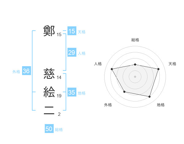 鄭 慈絵二さんを姓名の画数から五運を鑑定