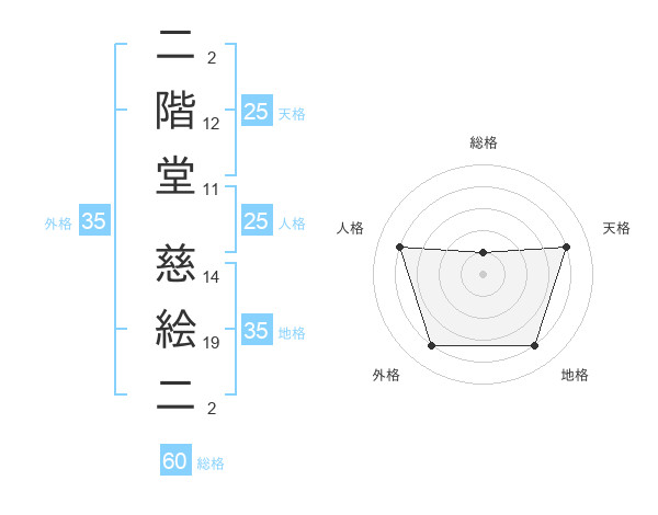 二階堂 慈絵二さんの天格は25画の4点!