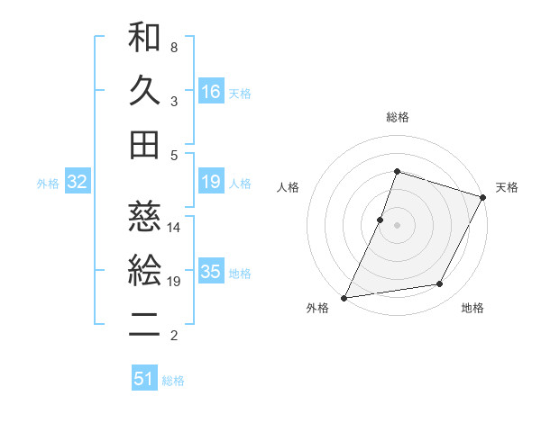 和久田 慈絵二さんの総格は51画の3点!