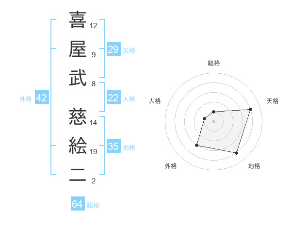 占い結果は姓名判断である以上、良い場合も悪い場合もありますが、決してお名前を誹謗中傷するものでなく、画数の自動計算によって得られたものです。また、本サイトの検索によって得られた鑑定結果で、第三者を誹謗中傷したり名誉を棄損するような行為を禁じます。
