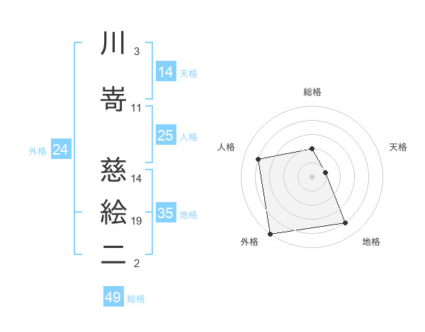 川嵜 慈絵二さんを姓名の画数から五運を鑑定