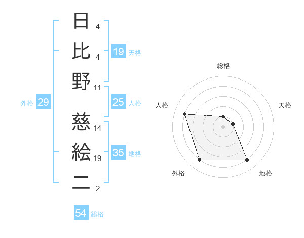 日比野 慈絵二さんの総格は54画の1点