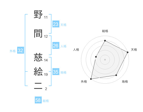 野間 慈絵二さんを姓名の画数から五運を鑑定