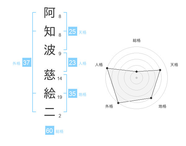 阿知波 慈絵二さんを姓名の画数から五運を鑑定