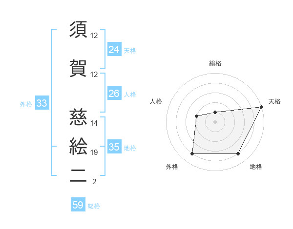 須賀 慈絵二さんの総格は59画の1点