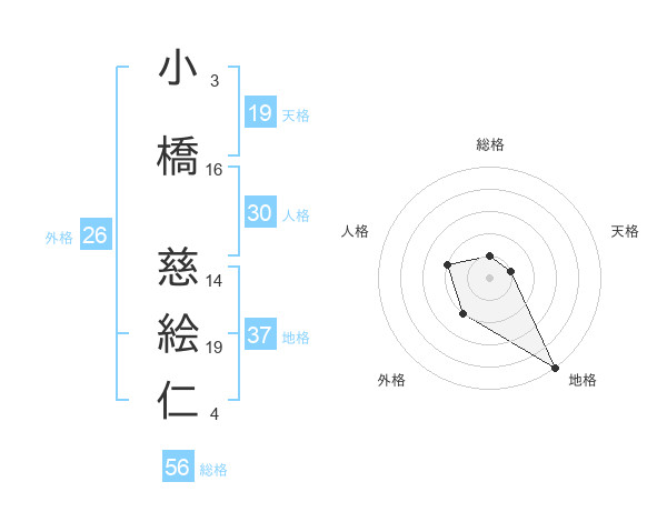 小橋 慈絵仁さんを姓名の画数から五運を鑑定