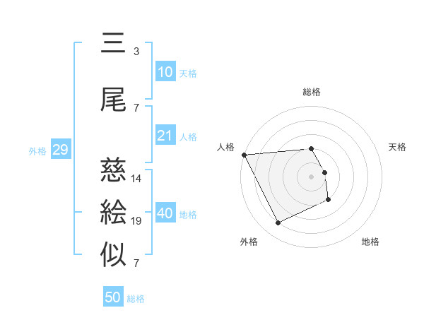 三尾 慈絵似さんを姓名の画数から五運を鑑定